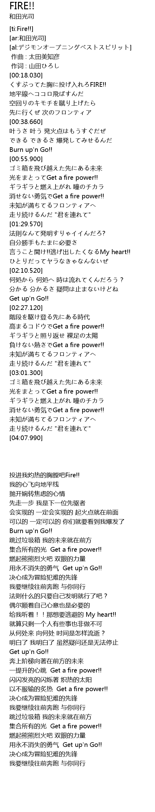 | [02:46.100] | 負けない熱さでGet a fire power!! |