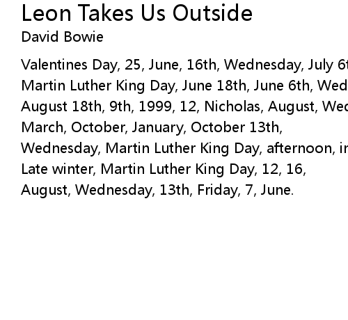 | Martin Luther King Day, June 18th, June 6th, Wednesday, | |