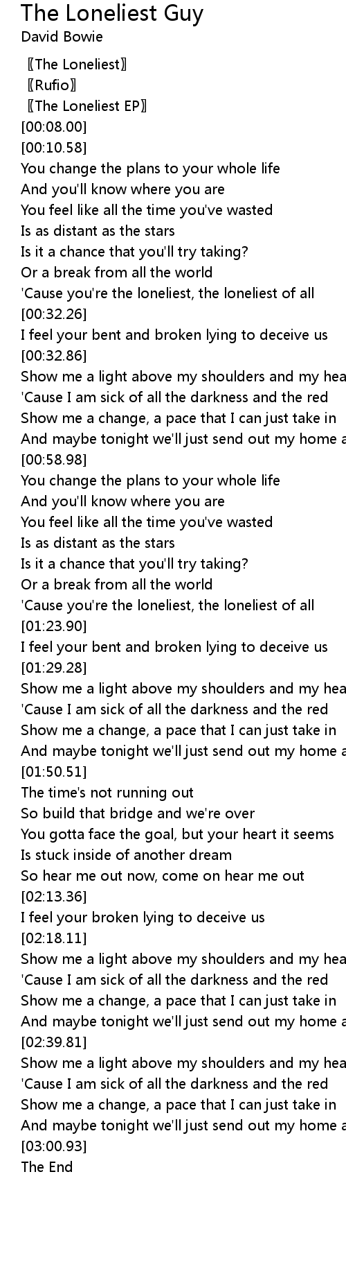 | [01:18.44] | 'Cause you're the loneliest, the loneliest of all |