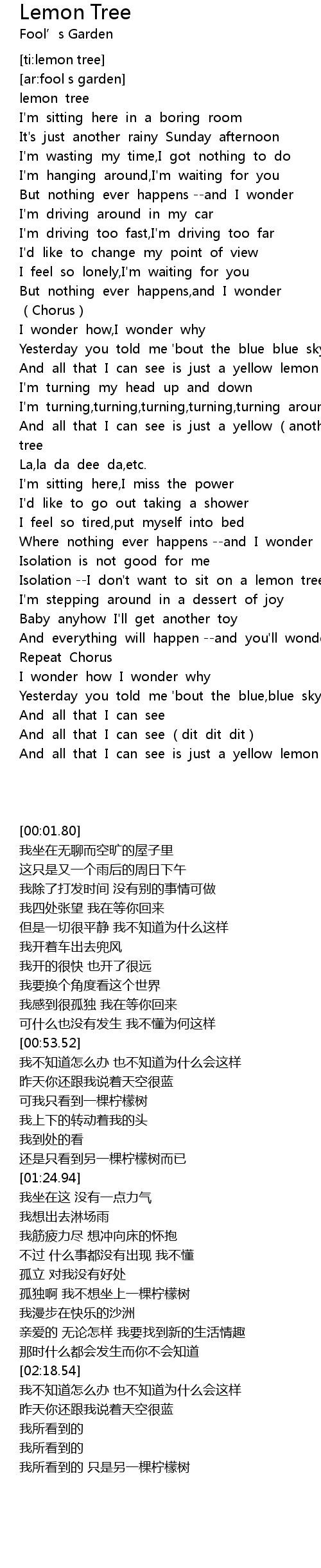 | [03:01.08] | And all that I can see is just a yellow lemon tree |