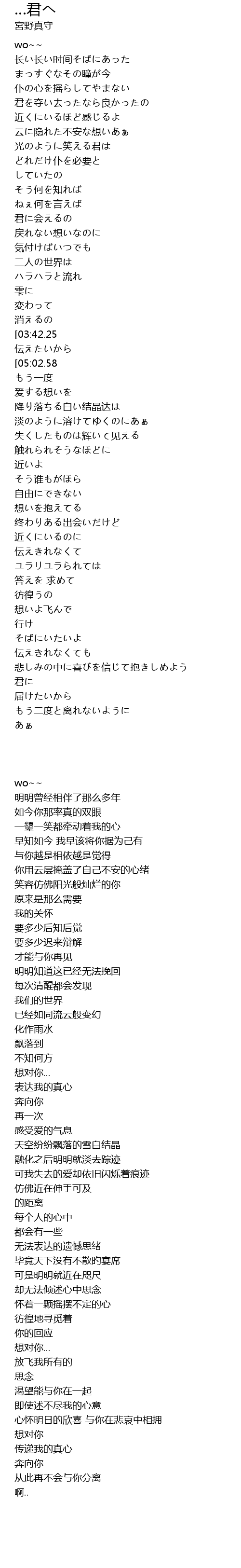 | [01:58.24][03:42.25] | 君に… |