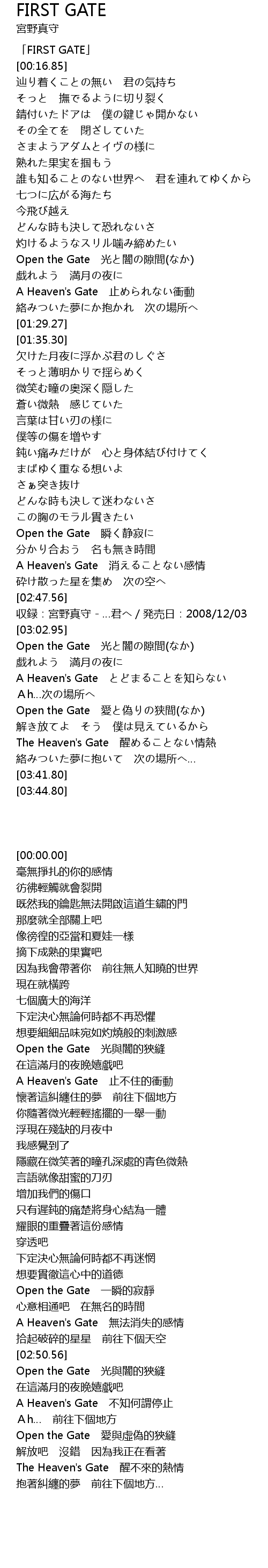 | [03:04.95] | Open the Gate 光と闇の隙間(なか) |