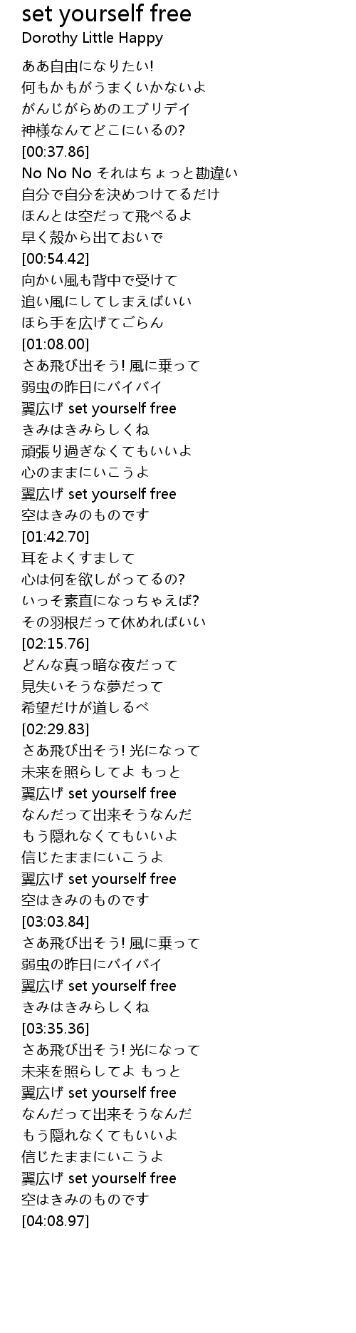 | [04:00.66] | 翼広げ set yourself free |