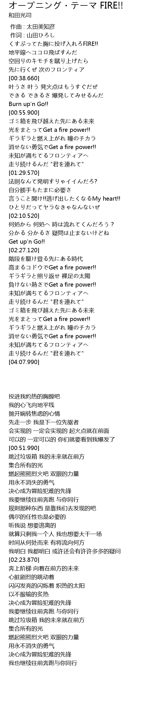 | [02:46.100] | 負けない熱さでGet a fire power!! |