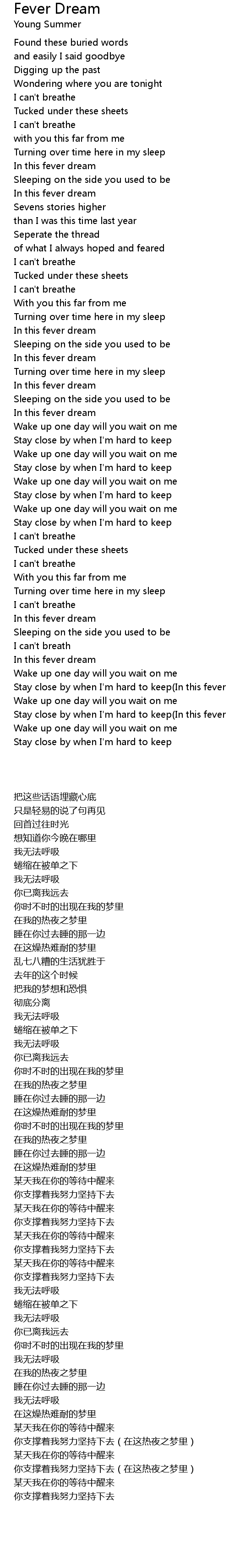 Stay close by when I'm hard to keep(In this fever dream) |