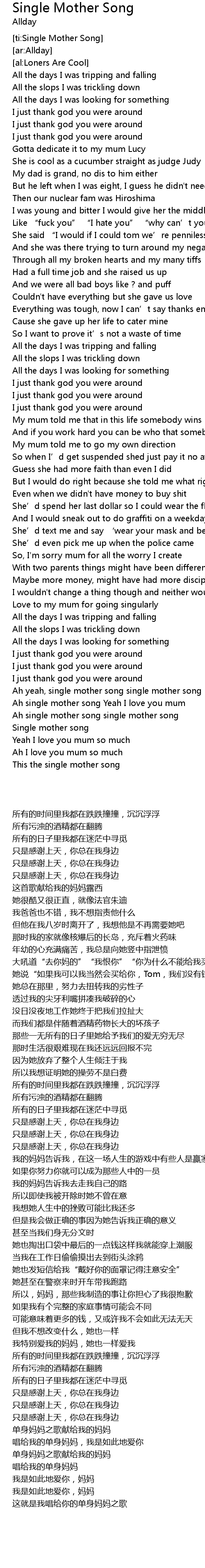 | [03:05.48] | Ah yeah, single mother song single mother song |