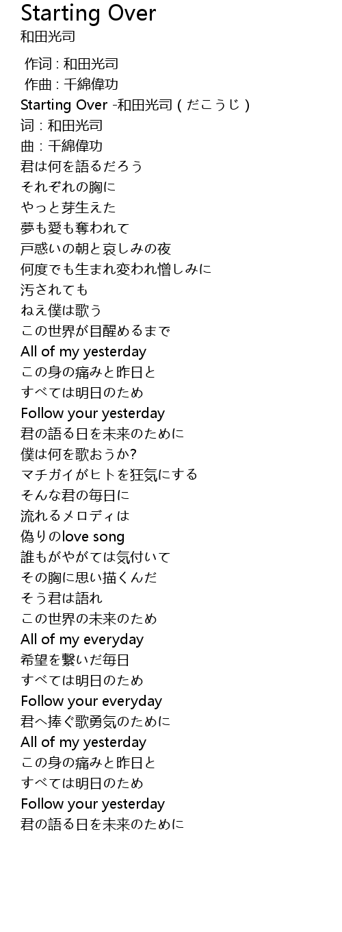 | [00:00.00] | Starting Over -和田光司(だこうじ) |