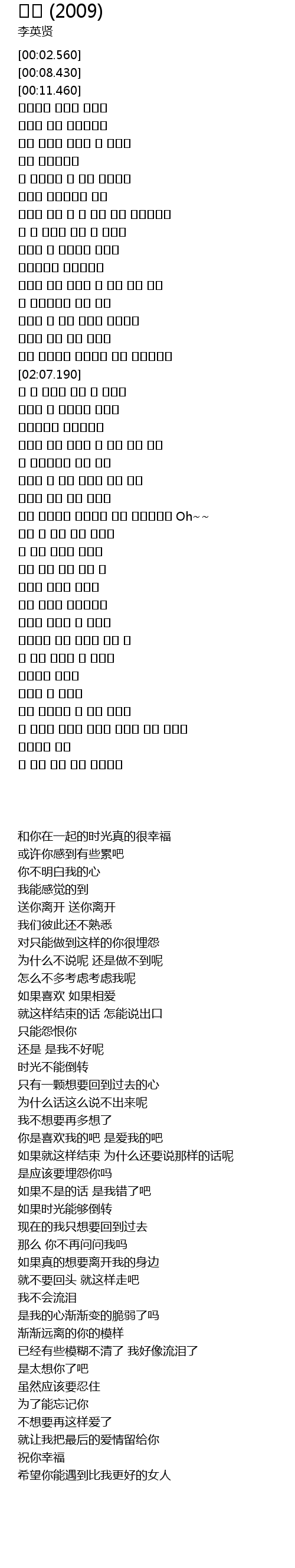 | [02:33.380] | 이렇게 끝낼 거면서 왜 그런 말을 했니 |