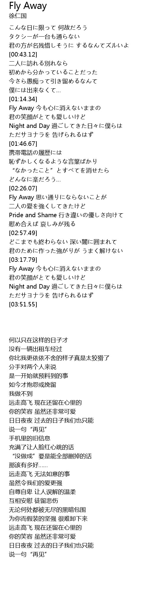 | [03:18.49] | Fly Away jin xin xiao |