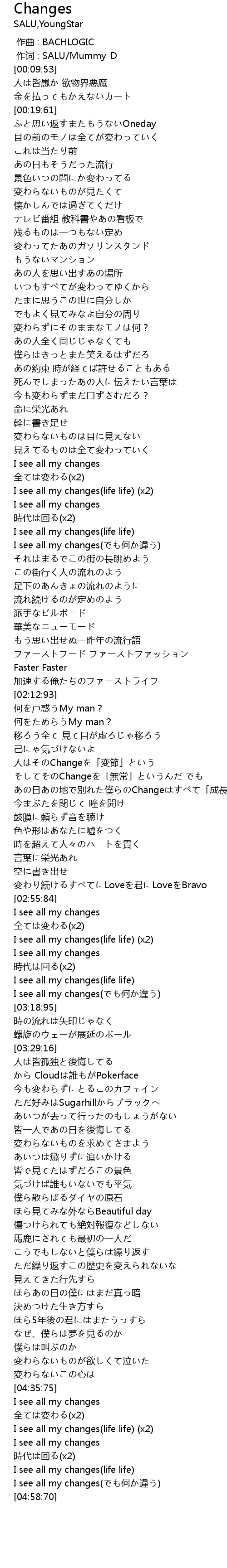 | [03:01:74] | I see all my changes(life life) (x2) |