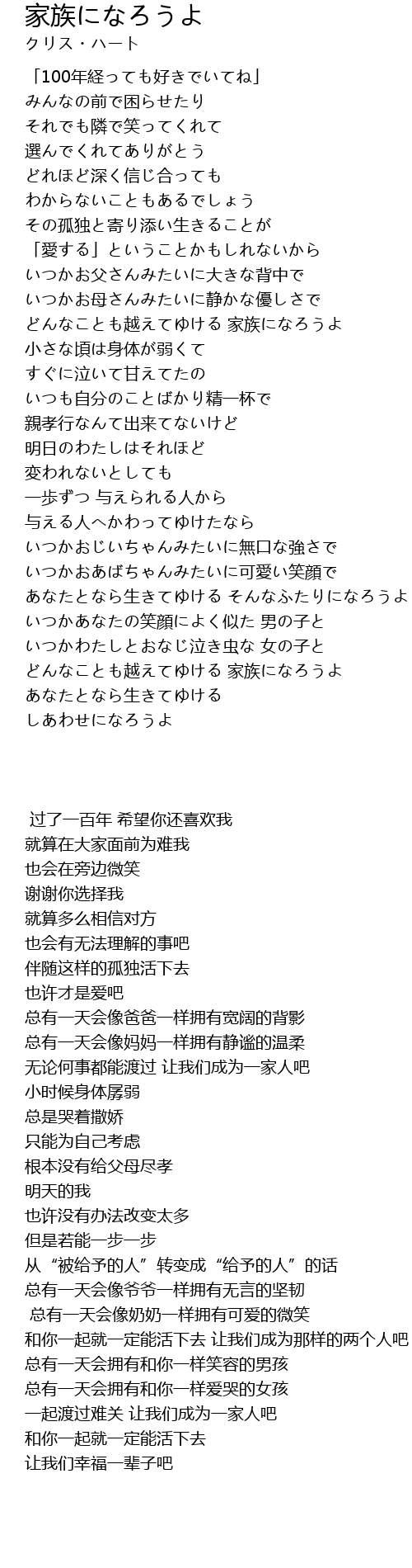 どんなことも越えてゆける 家族になろうよ |
