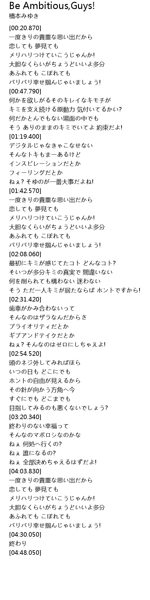 | [04:23.980] | バリバリ幸せ掴んじゃいましょう! |