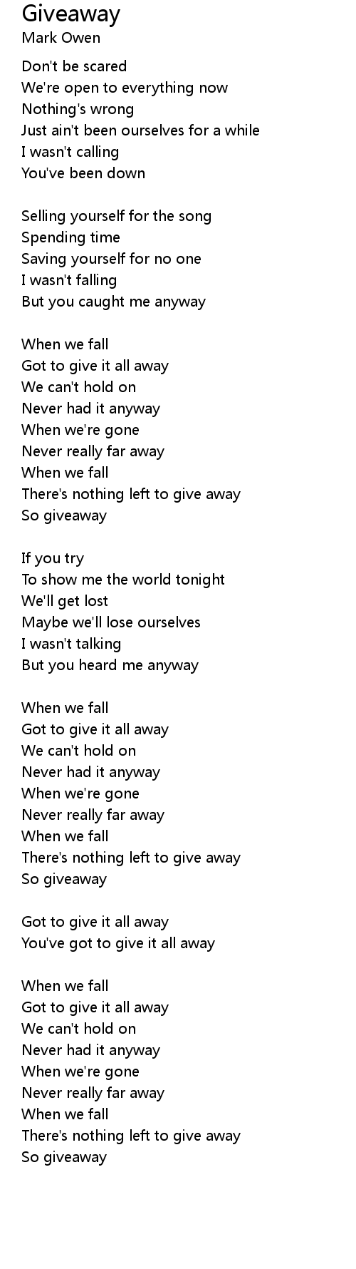 Got to give it all away |