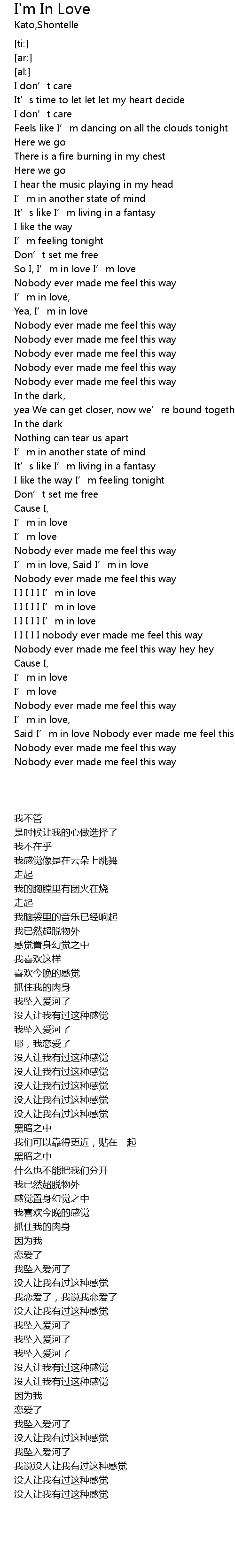 | [03:19.37] | Said I' m in love Nobody ever made me feel this way |