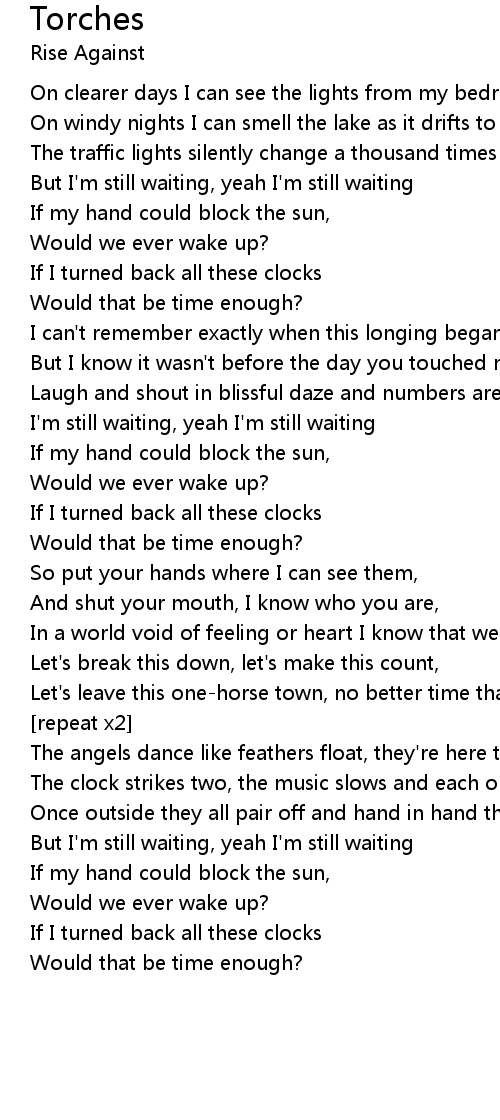 In a world void of feeling or heart I know that we are the torches in the dark |