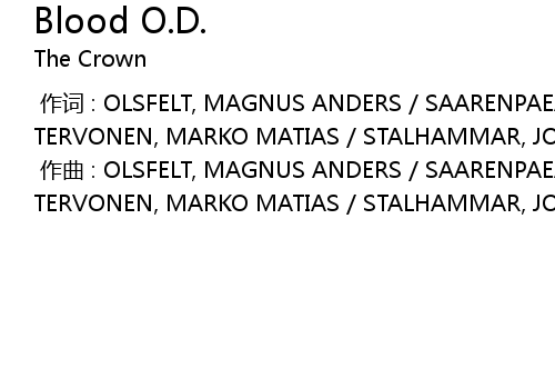 | [00:00.000] | 作曲 : OLSFELT, MAGNUS ANDERS / SAARENPAEAE, JANNE ANTERO / TERVONEN, MARKO MATIAS / STALHAMMAR, JONAS BO / SUNESSON, MARCUS JAN |