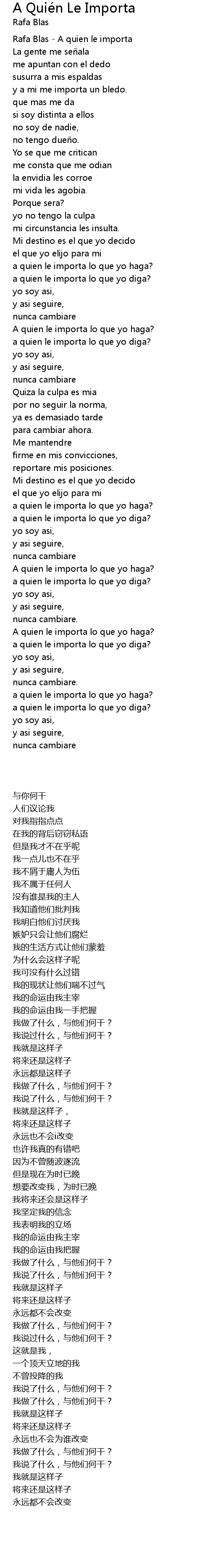 | [03:03.33] | A quien le importa lo que yo haga? |