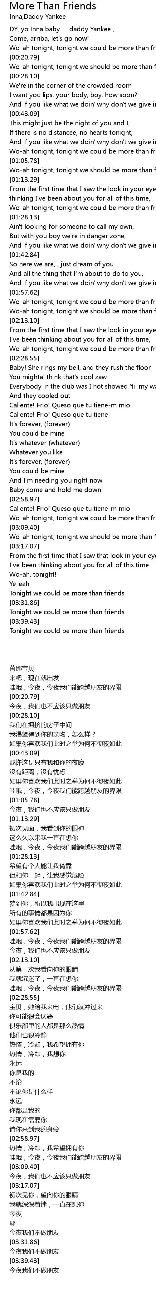 | [02:21.42] | Woah tonight, tonight we could be more than friends. |
