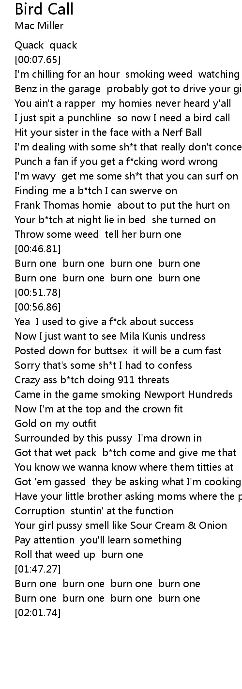 I just spit a punchline so now I need a bird call |