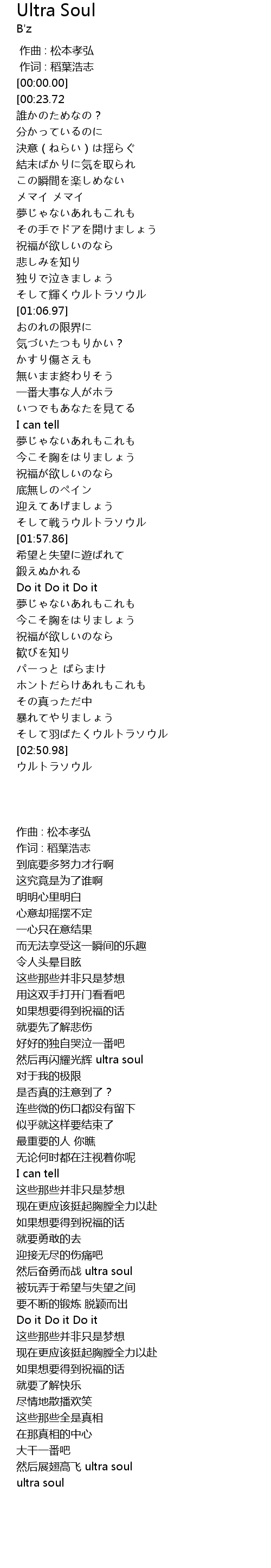 | [03:06.28] | ウルトラソウル |