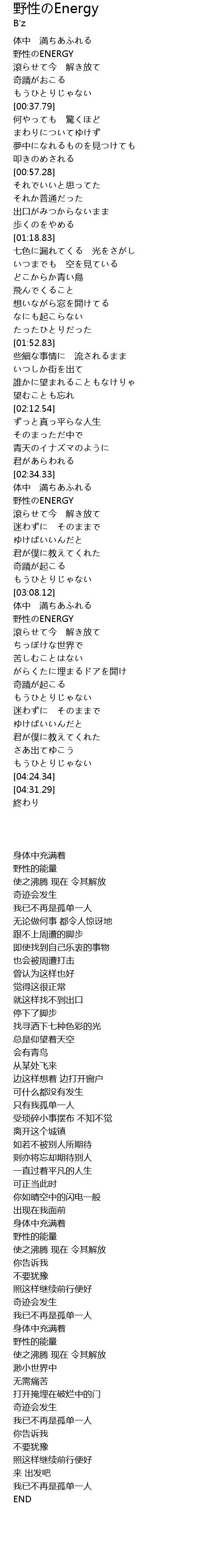 | [03:31.77] | yě xìng ENERGY |