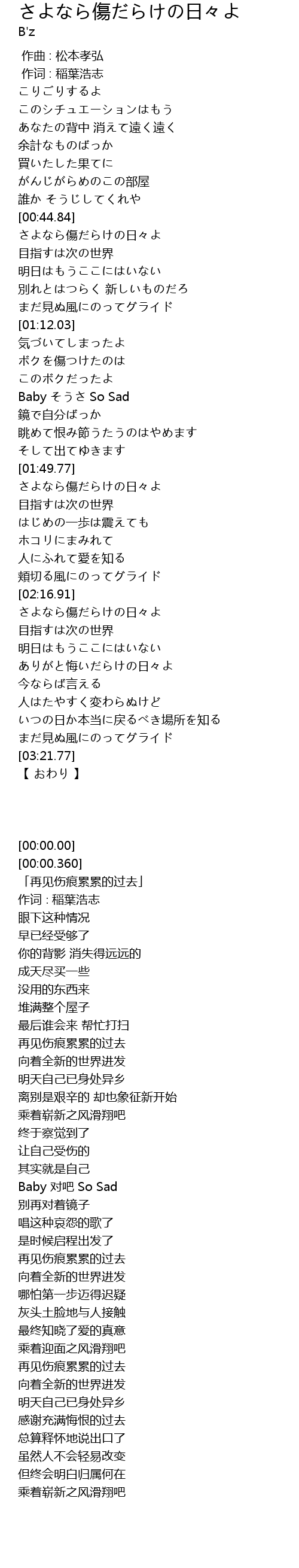 | [02:43.66] | さよなら傷だらけの日々よ |