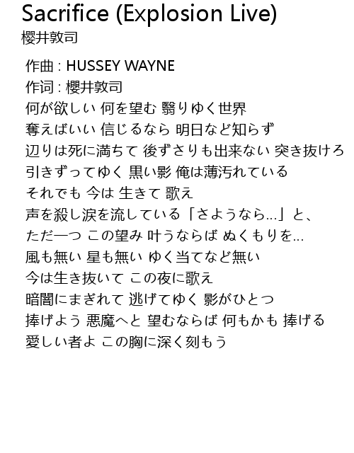 | [00:01.00] | 作词 : 櫻井敦司 |