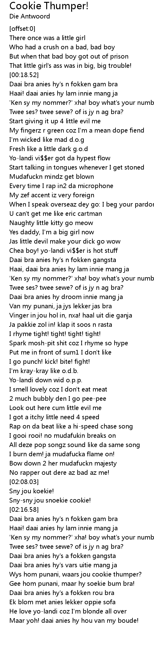 Wys hom punani, waars jou cookie thumper? |