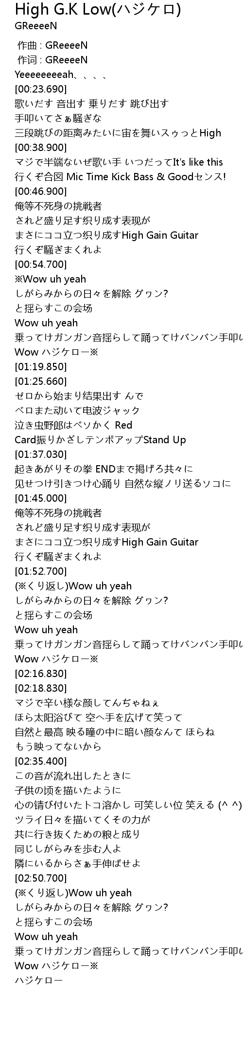 | Song | High G.K Low(ハジケロ) |
