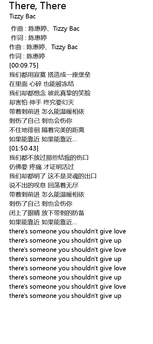 | [00:00.00] | zuò qǔ : chén huì tíng Tizzy Bac |