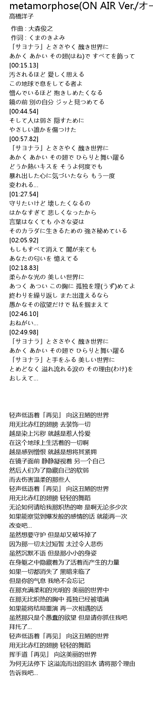 | [03:23.64] | あかく あかい その翅で ひらりと舞い躍る |