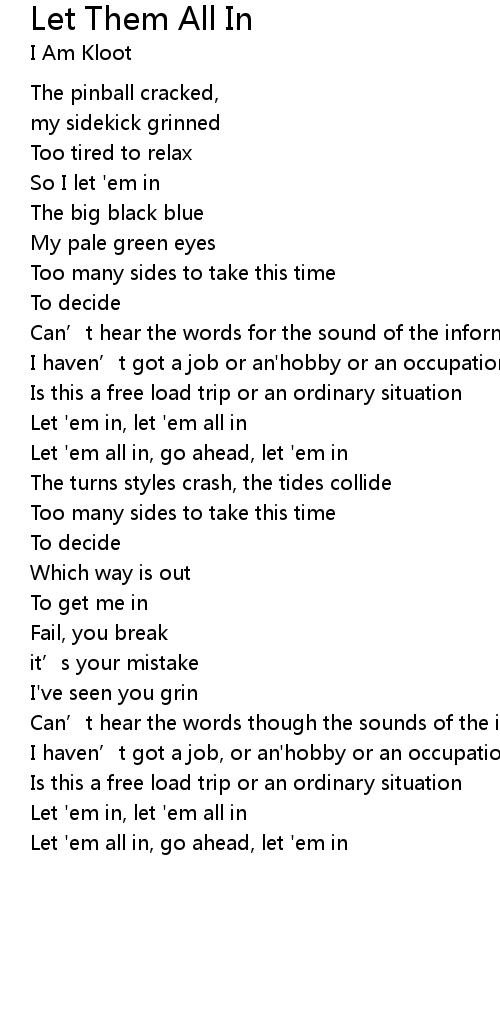 | Let ' em all in, go ahead, let ' em in |