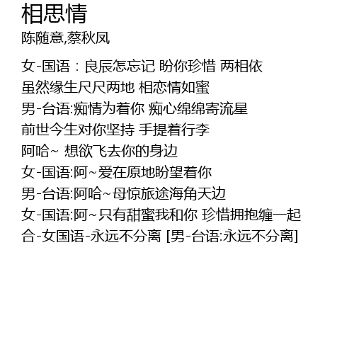 | 合-女国语-永远不分离 [男-台语:永远不分离] |