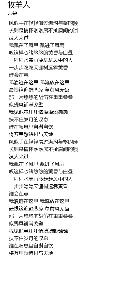 | [00:20.960] | 风似手在轻轻滑过满沟与壑的额 |