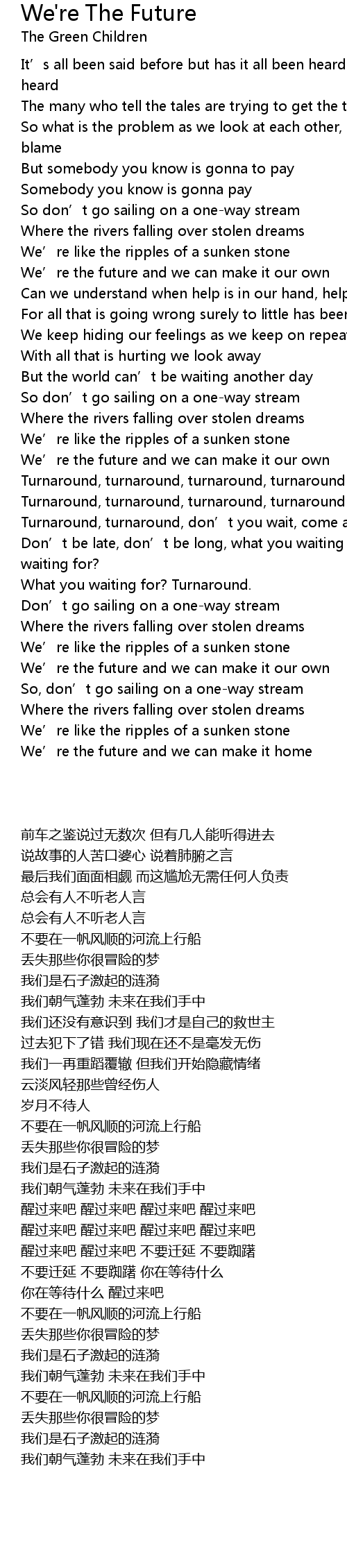 | [00:59.94] | We' re the future and we can make it our own |