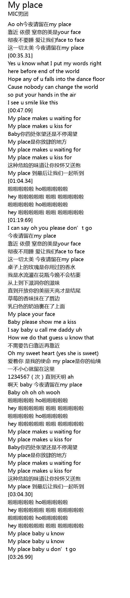 | [03:23.75] | My place baby u don' t go |
