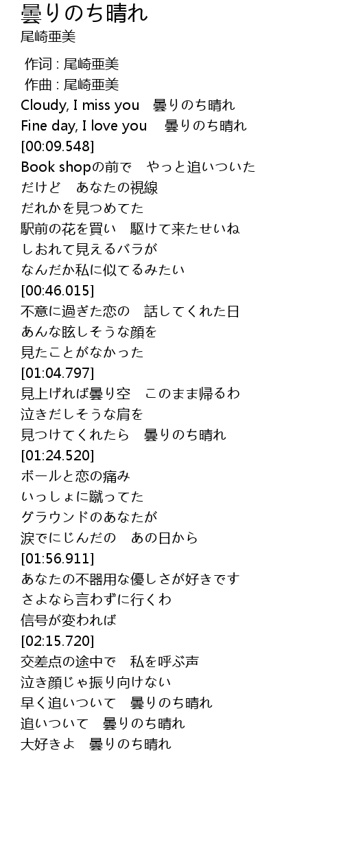 | [00:00.300] | Cloudy, I miss you 曇りのち晴れ |