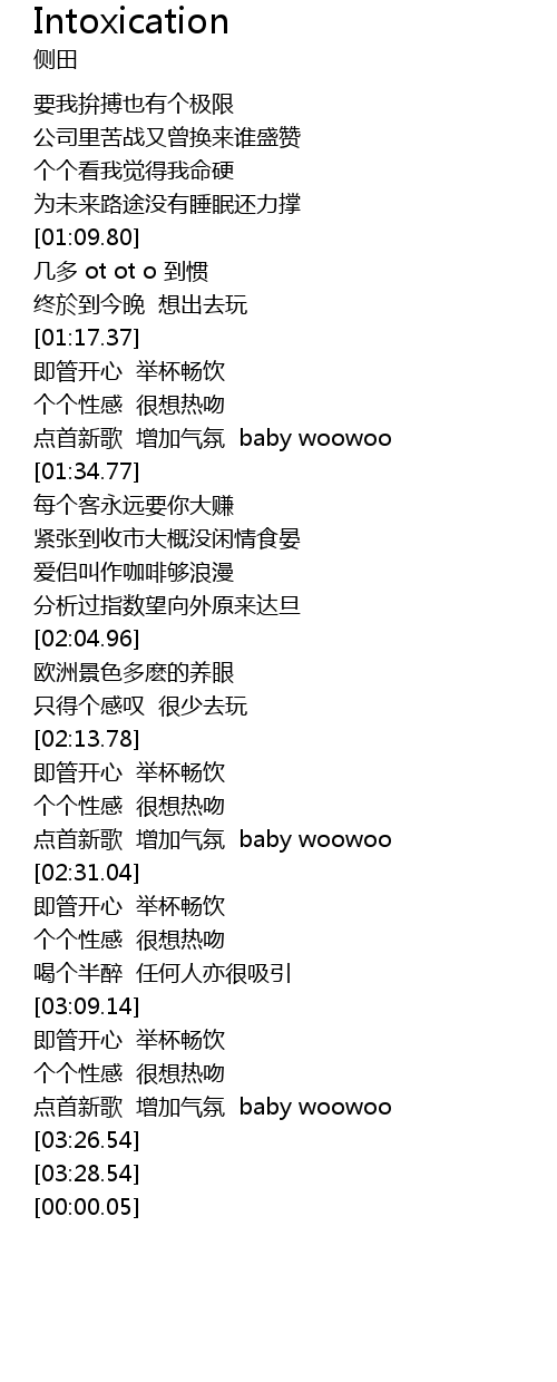 | [03:18.87] | 点首新歌 增加气氛 baby woowoo |