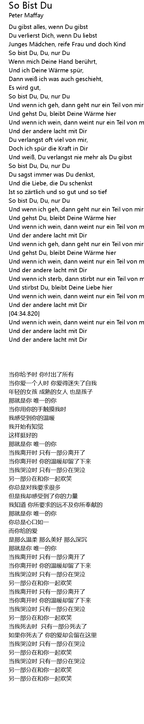 | [00:35.976] | So bist Du, Du, nur Du |