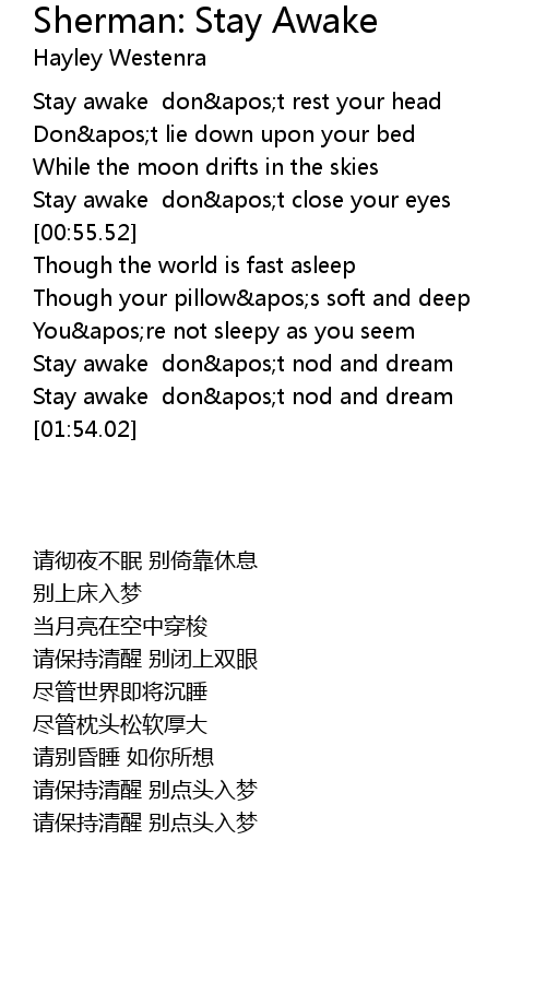 | [00:18.22] | Stay awake don't rest your head |