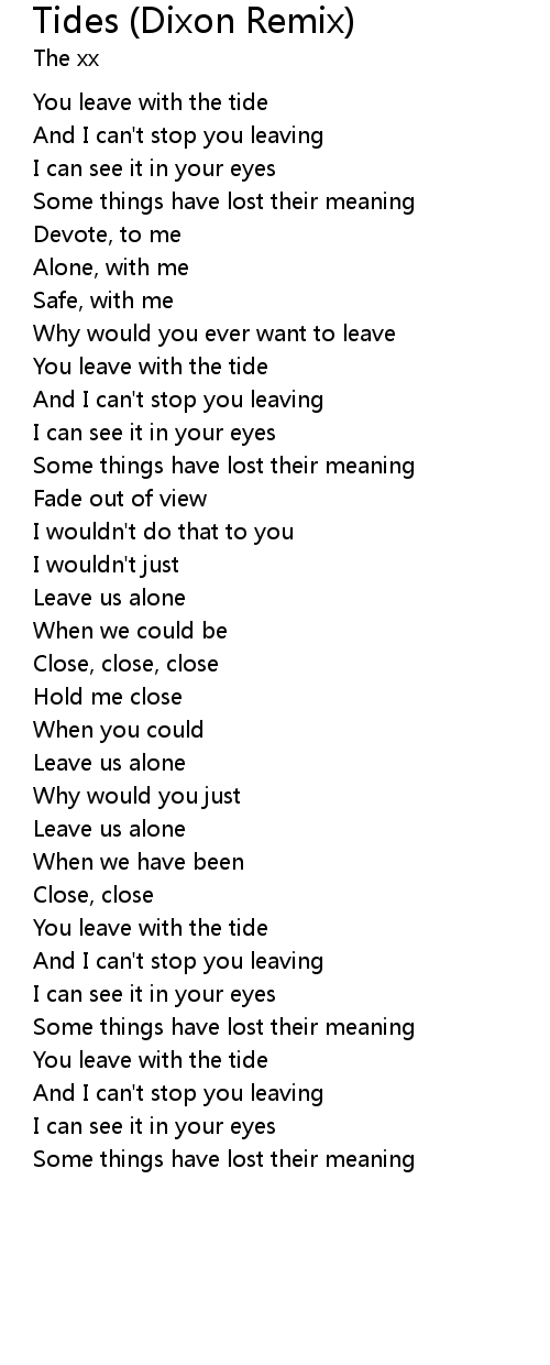 You leave with the tide |