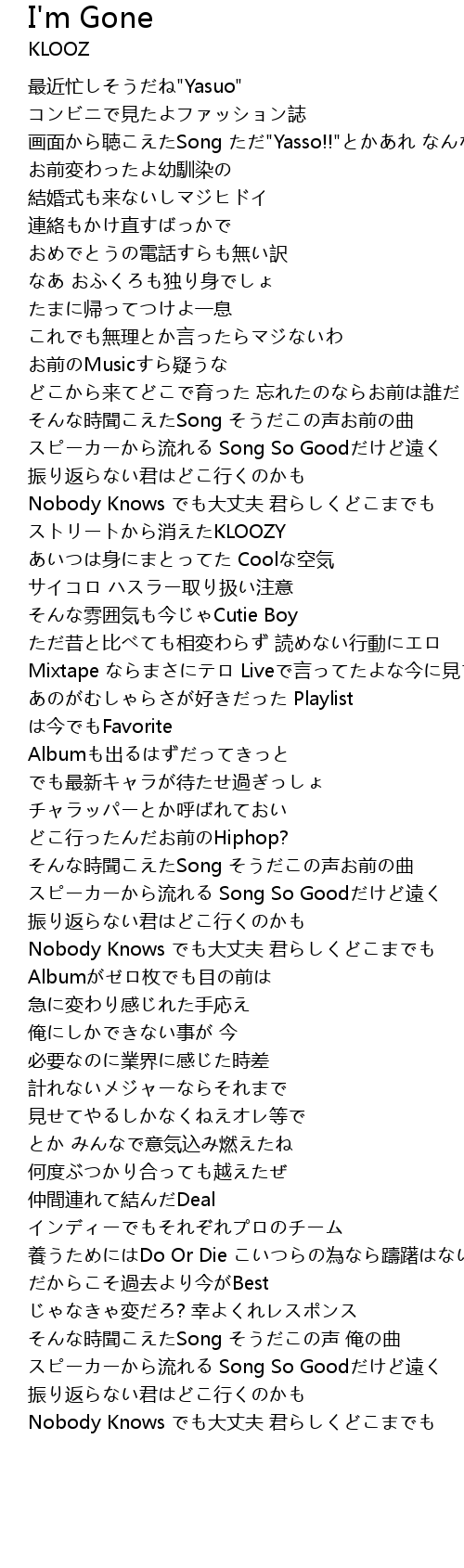 | [01:20.64] | ストリートから消えたKLOOZY |