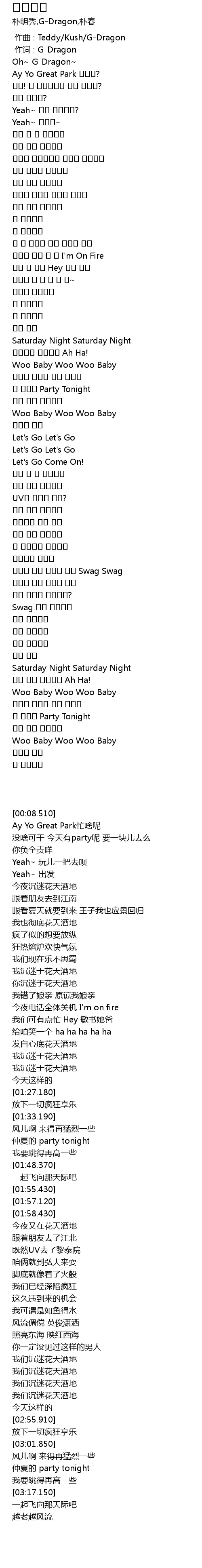 | [00:01.00] | 作词 : G-Dragon |
