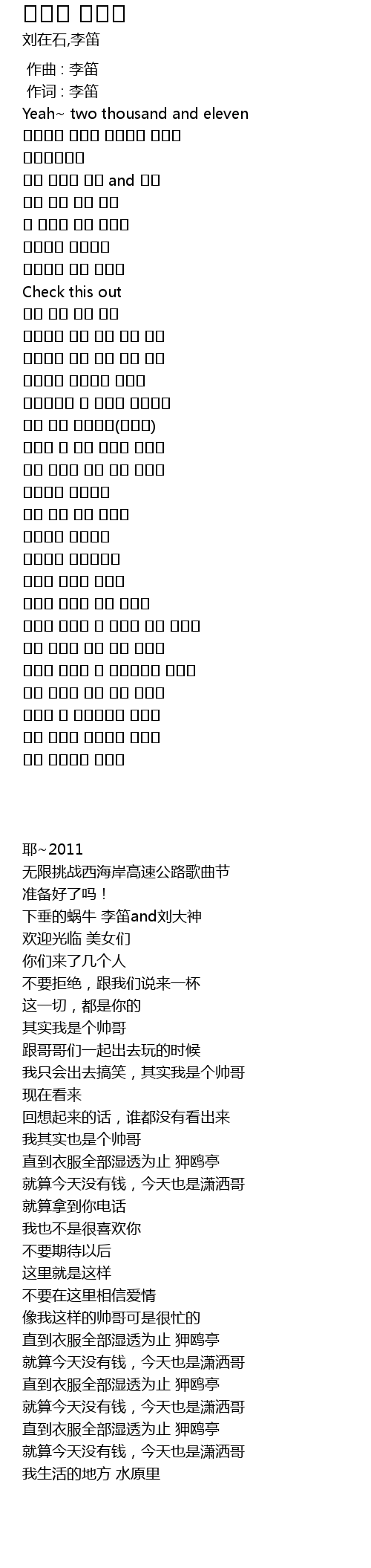 | [00:01.00] | 作词 : 李笛 |