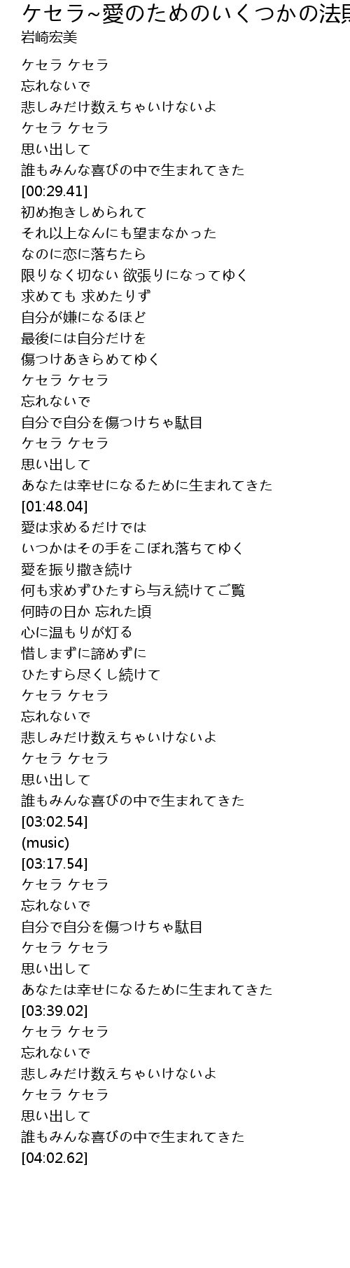 | [02:41.61] | ケセラ ケセラ |
