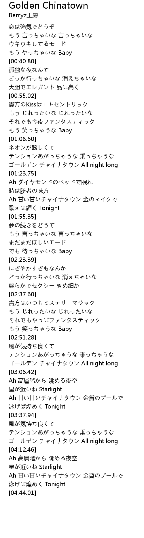 | [01:16.97] | ゴールデン チャイナタウン All night long |