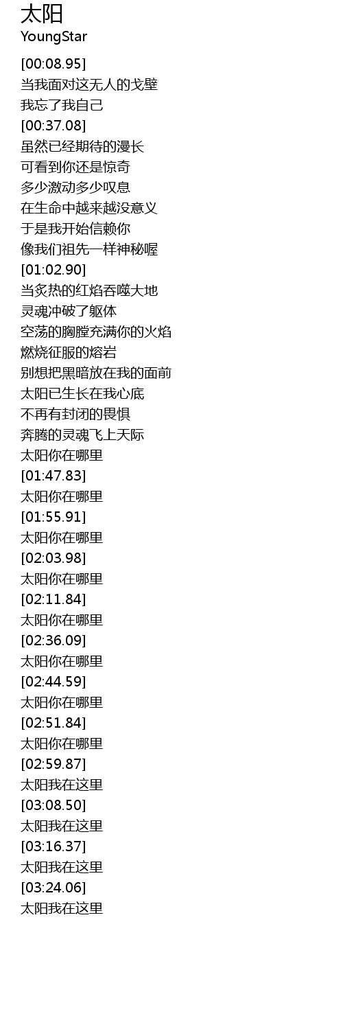 | [01:57.72] | 太阳你在哪里 |
