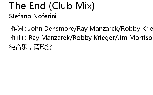 | [00:00.000] | 作词 : John Densmore/Ray Manzarek/Robby Krieger/Jim Morrison |