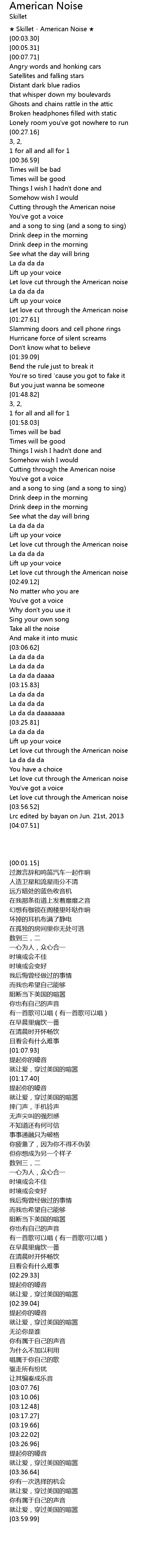 | [00:01.15] | ★ Skillet - American Noise ★ |
