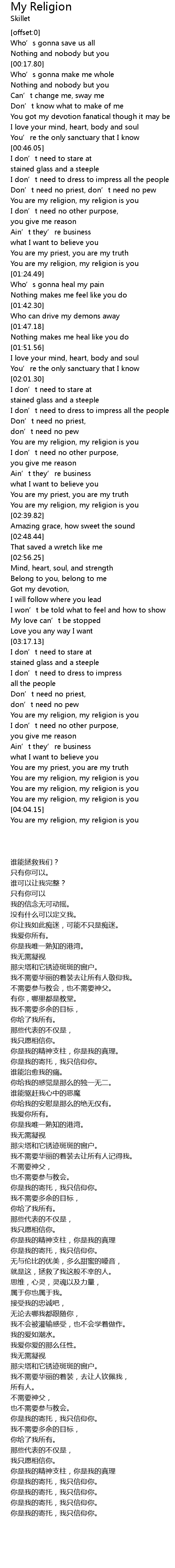 | [00:57.61] | Don' t need no priest, don' t need no pew |